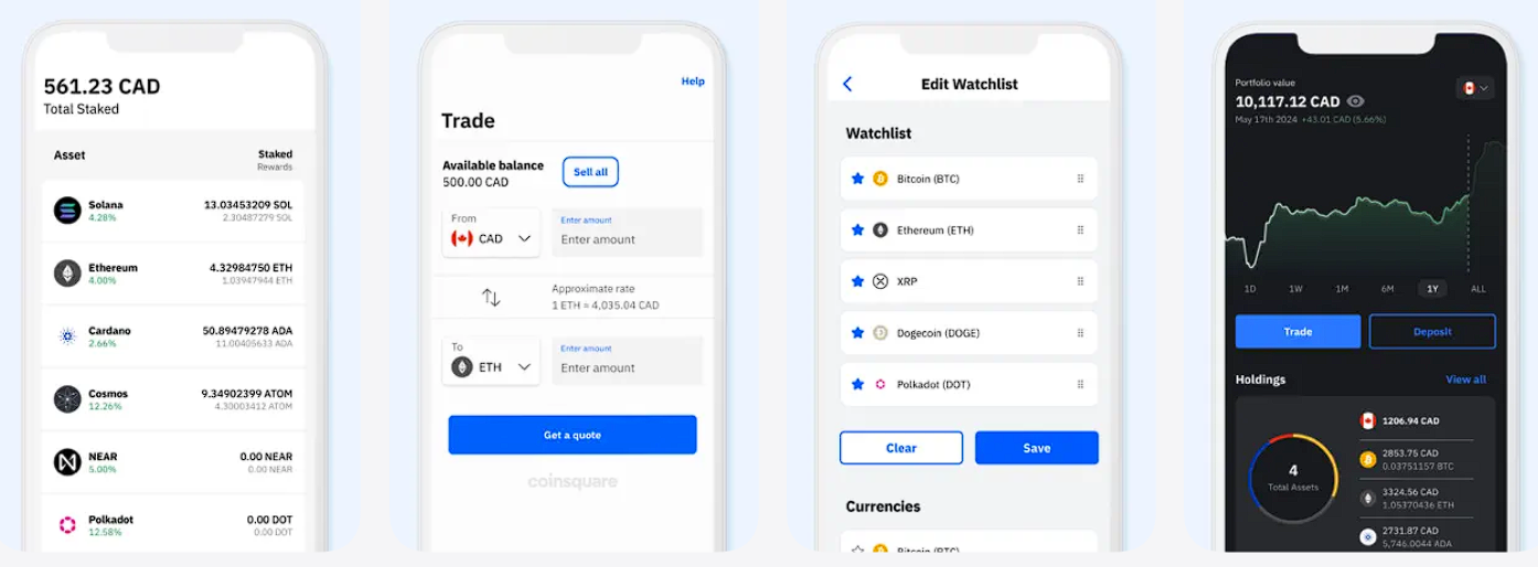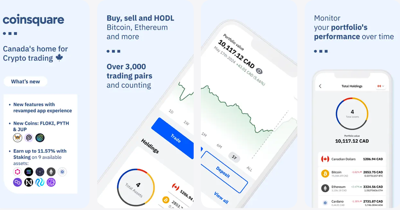 Площадка Coinsquare Buy Bitcoin Canada появилась в Канаде в 2014 году. Платформа зарегистрирована в Торонто. Изначально разработчики хотели создать минималистичный сайт для работы с криптой, однако позже проект расширился до приложения и в него добавили дополнительные функции типа стейкинга.
