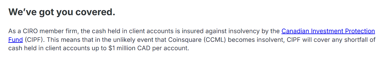 Крипта хранится на кастодиальных кошельках, а фиатные средства клиентов застрахованы через CIPF. Если с платформой что-то случится, часть денег пользователям вернут за счет страховых выплат.