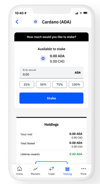 Отдельного внимания заслуживает стейкинг. Coinsquare позволяет размещать токены в пулах и получать за это вознаграждения до 14% годовых. Все операции проходят через проверенных валидаторов, а начисленные награды автоматически реинвестируются. Есть комиссия, у разных активов свои условия по времени блокировки и разблокировки, однако риск сведен к минимуму благодаря проверенным партнерам.