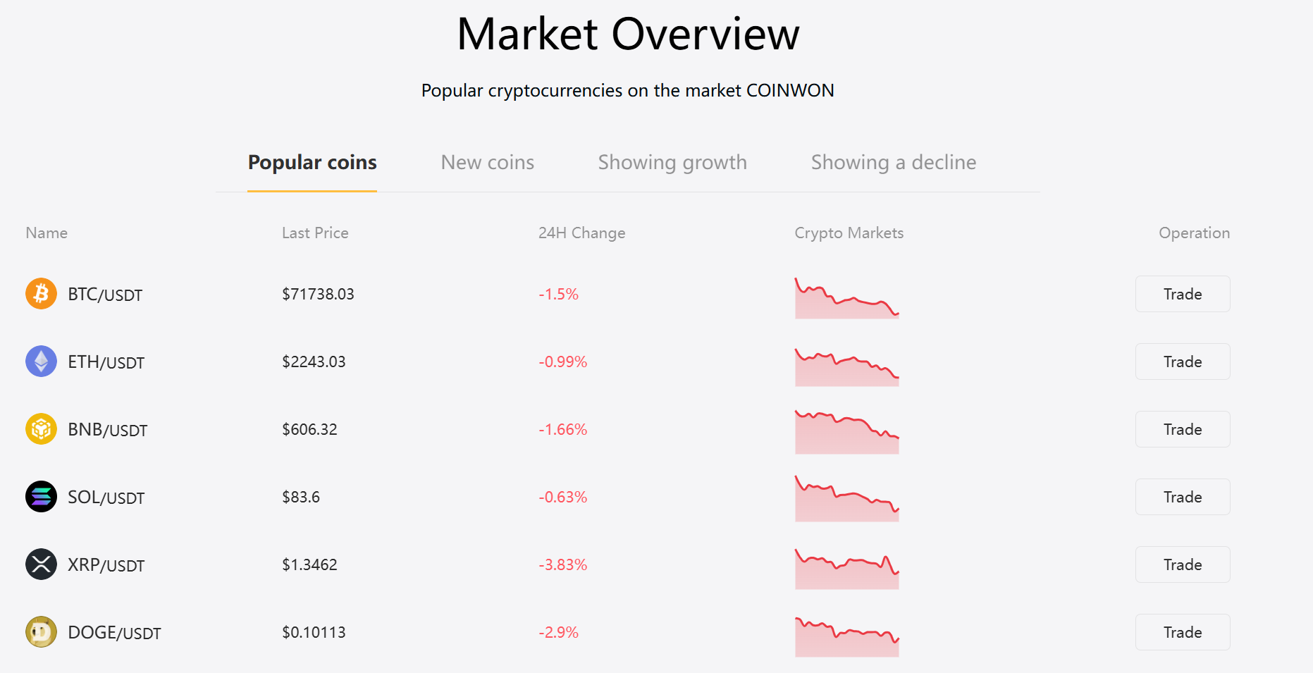 CoinWon exchange – это платформа, где можно покупать и продавать разные монеты на спотовом рынке. Там активы обмениваются напрямую по текущей цене. Сервис также дает доступ к фьючерсам. Можно открывать длинные и короткие позиции при помощи кредитного плеча.