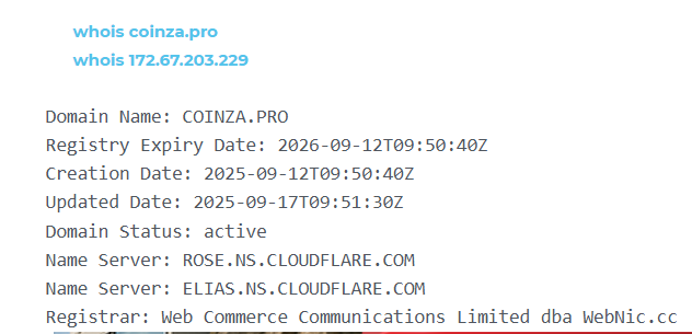 Coinza Pro — очередной скам, замаскированный под обменник. Отсутствие информации о владельцах и лицензиях, а также свежий домен без отзывов — явные признаки мошенничества. Не ведитесь на этот развод, иначе рискуете потерять свои средства.
