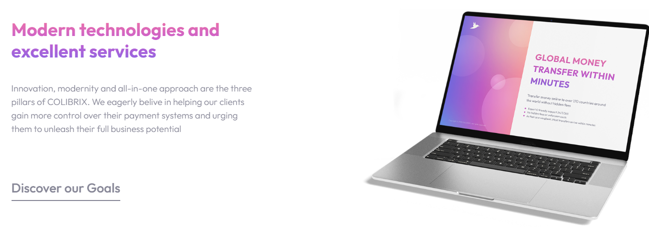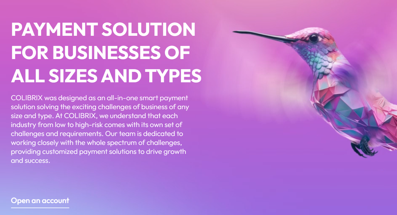 Colibrix – это международная платежная система. Система ориентирована на компании сферы электронной коммерции и гэмблинга. Пользователи якобы получают надежную обработку транзакций, стабильность и простую интеграцию. Colibrix работает на базе лицензии EMI в Великобритании. Система заявлена как универсальное решение для глобальных платежей и финансовых процессов.