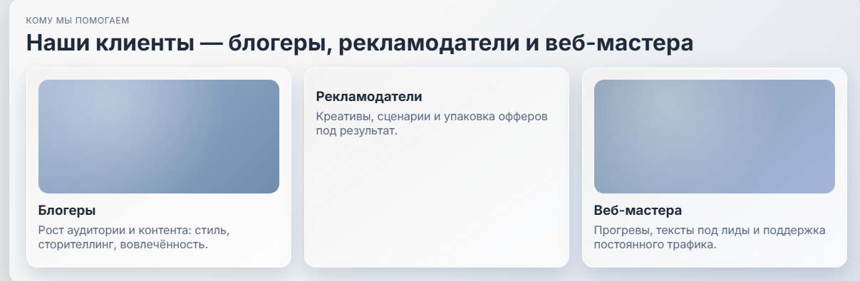 Доказательств эффективности, каких-то метрик, которые демонстрировали бы результаты работы не предоставляется. Более того, информация о клиентах тоже выглядит весьма расплывчатой. На сайте нет никаких кейсов, хотя бы указаний информации о клиентах.