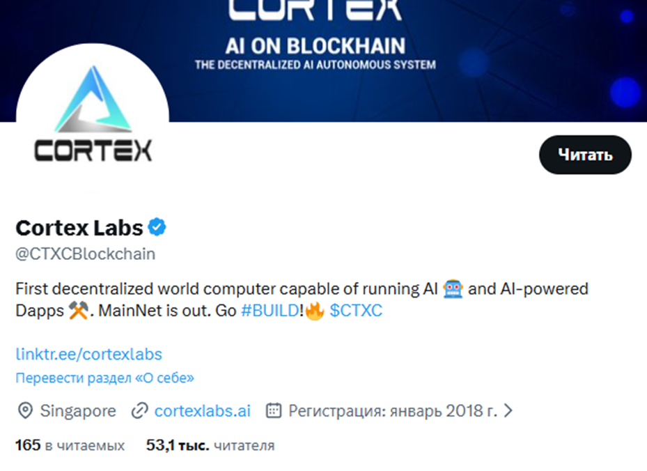 В перечне инвесторов в токен Ctxc находится Bitmain, который является производителем майнингового оборудования. Еще указан FBG Capital, что делает проект популярным. Площадка активно продвигается в социальных сетях. Проект есть на X, где числится более 53 000 активных подписчиков. В «Фейсбуке» CTXCBlockchain находится 2,7 тыс. пользователей, но активность низкая. Предлагается Cortex Official и CortexFoundation.