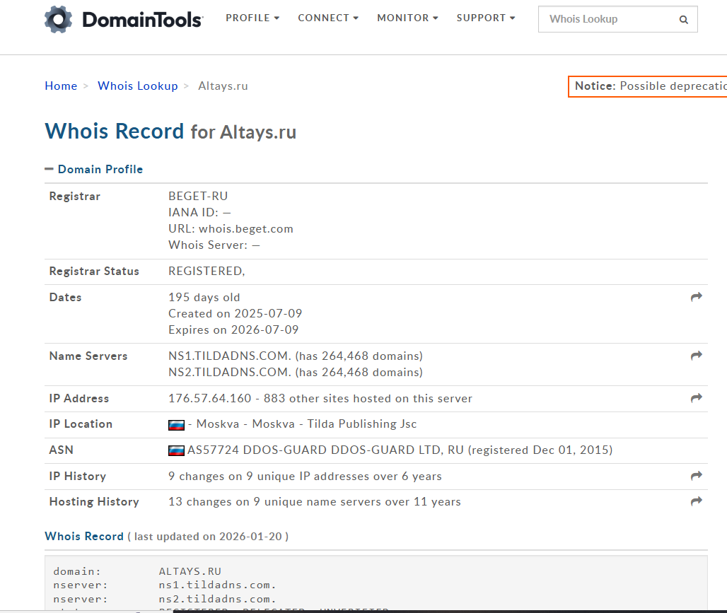 Еще один нюанс это сайт Altaysru “Алтайс”, через который продвигается инвестиционная часть истории. Сам домен зарегистрирован 9 июля 2025 г., на момент анализа ему около 6 месяцев.