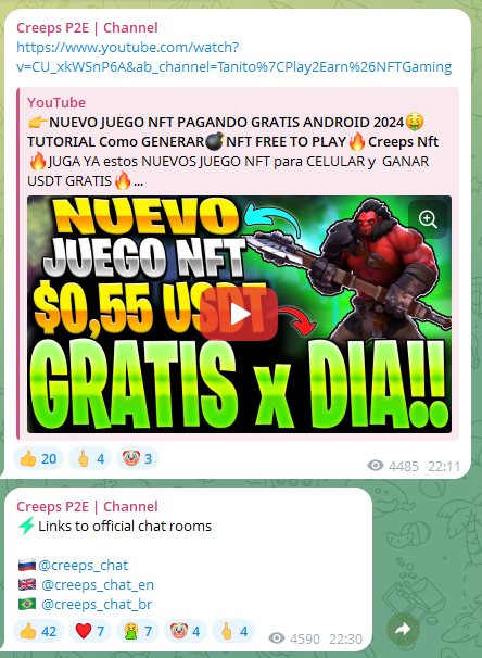 Игра Creeps отзывы от пользователей получила негативные. Это экономическая Play-to-Earn платформа с возможностью получения реального дохода. Заявленные условия заработка не подкреплены прозрачной информацией. Последние официальные новости проекта датируются 8 марта 2024 года, после чего активное развитие фактически прекратилось.