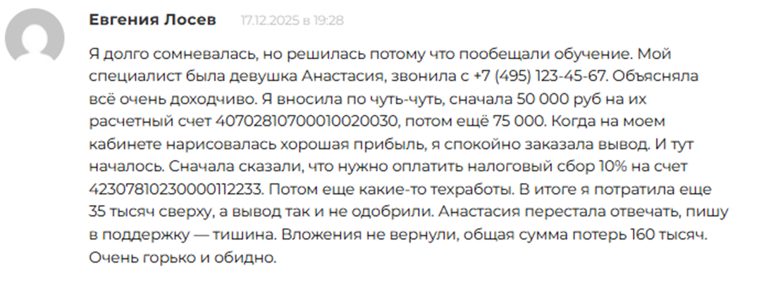 При этом, анализ возраста сайта показал запус его только в октябре 2025. Как брокер мог работать без сайта, непонятно. Но вероятнее всего, мошенники просто взяли действующее название компании, чтобы создать видимость легальной работы.