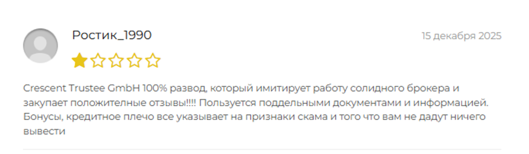 Некоторые в отзывах на Crescent trustee com рассказывают о мошеннической деятельности менеджеров брокера, которые обманом заставили их внести дополнительные суммы средств на сайт.