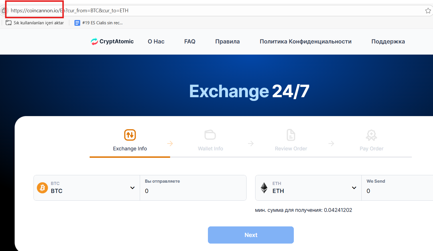 - в сети есть предупреждения о том, что это мошеннический обменник.