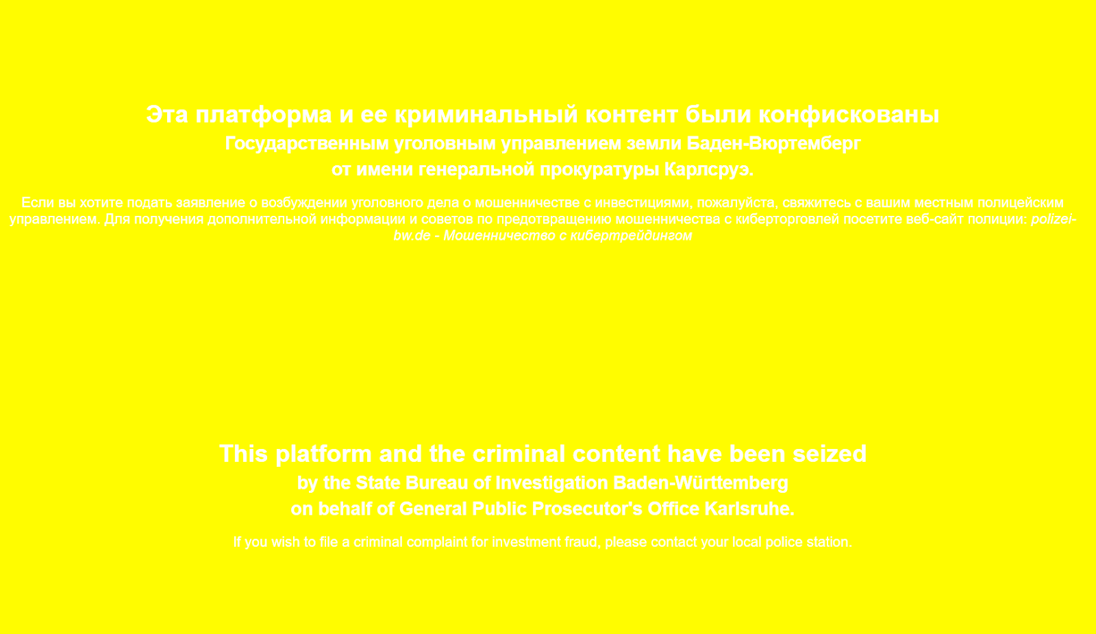 Сайт crypto grind com недоступен уже достаточно давно. Попытки перехода на него приводят к тому, что пользователя перенаправляют на страницу с предупреждением, на которой говорится о том, что платформа и ее контент конфисковали от имени Генеральной прокуратуры Карлсруэ.