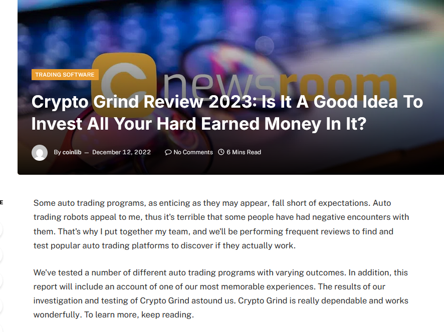 Обзор программного обеспечения для автоматической торговли криптовалютой Crypto Grind: отзывы пользователей, что предлагается клиентам сервиса
