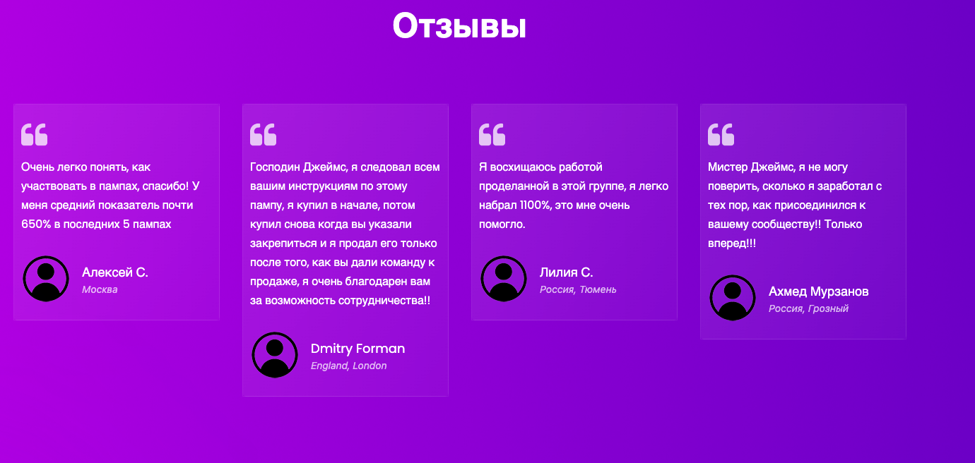 Кроме отзывов, которые Джеймс оставил на своем сайте сам, в сети вообще нет информации об его работе. В связи с этим можно предположить, что отзывы с сайта – фейковые.