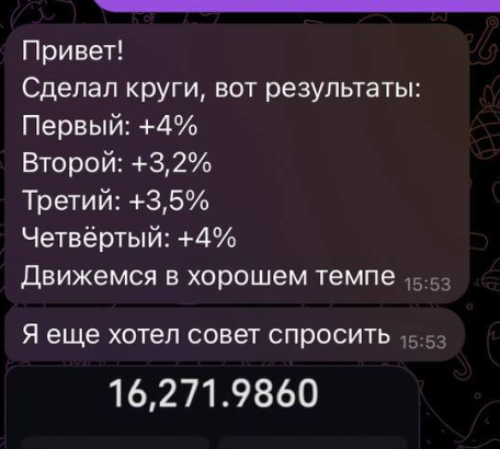 В следующей записи в канале автор публикует результаты работы одного из подписчиков. Он якобы получил доход от нескольких сделок подряд. Однако подобные скриншоты легко подделать.