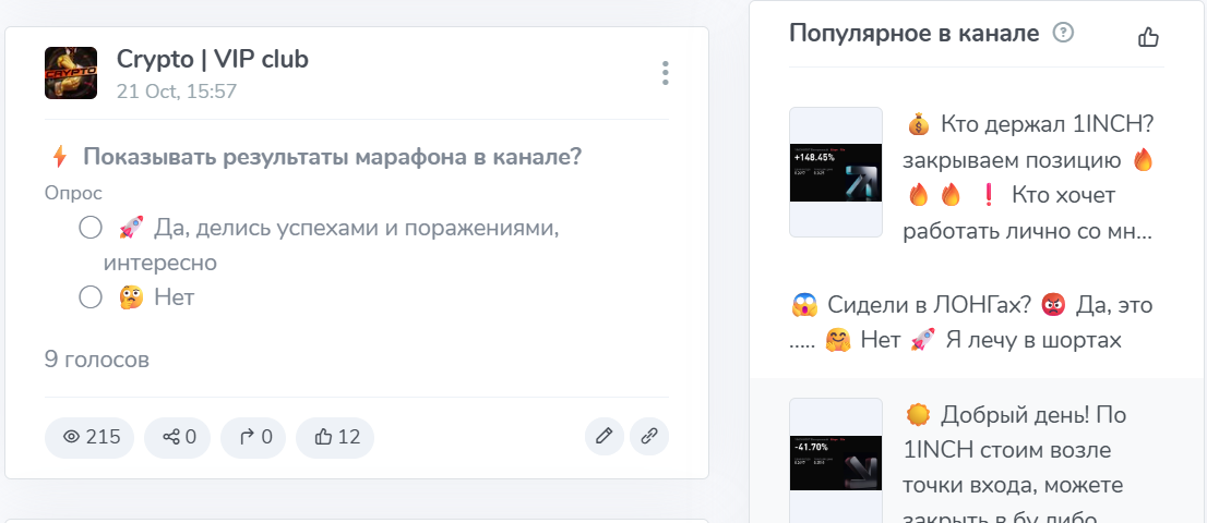 Дополняйте обзор своим мнением о канале Crypto VIP club и помогите другим пользователям принять взвешенное решение о сотрудничестве с проектом.
