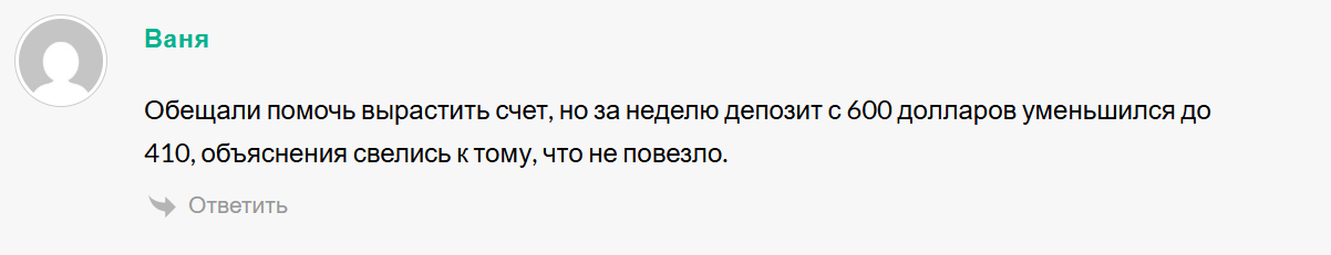 Откликов о сообществе практически нет, как и о канале Сигналы 1001 трейдера. Некоторые пользователи сообщают, что сотрудничество закончилось просадкой счета.