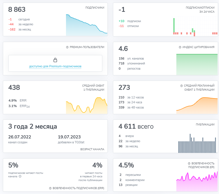 Статистика Crypto vipclub говорит о том, что канал создан в 2022 году. За время существования проекта с него была удалена часть записей. Судя по тому, что нетривиальное название так и не привлекло к себе внимание за годы существования канала, то оно уже не раз менялось. График пребывания подписчиков на канале показывает, что боты регулярно бегут с проекта, отслужив свой гарантийный период. Вовлеченность участников составляет не выше 5%.