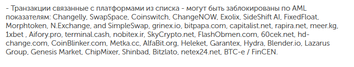 Если почитать правила обмена, а также AML, то в них нет ничего необычного. Для АМЛ сразу указаны платформы, которые считаются высокорисковыми: