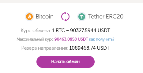 Скрытых комиссий на площадке нет. При формировании обмена сразу указывается сумма, которую получит пользователь. Она выглядит достаточно странно. Например, обменный курс для BTC такой: