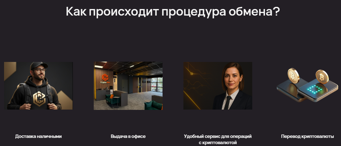 Сервисы позиционируются как обменники с разными направлениями. Есть VIP‑обмены, магазин услуг и общая площадка под названием Криптогекс. В интерфейсе делается упор на простоту.