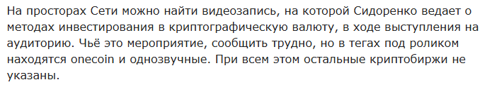Во-вторых, в медиапространстве до сих пор обсуждают её возможные пересечения с печально известной пирамидой OneCoin. И хотя Сидоренко утверждает, что вкладчики пирамиды просто были слушателями её курсов, такое оправдание выглядит для многих как попытка сохранить лицо при плохой игре.