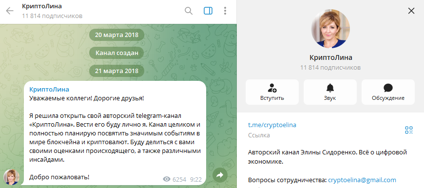 «КриптоЛина» – авторский Telegram-канал, который работает с марта 2018 года. С первого взгляда он кажется солидным ресурсом, и заслуживает внимания тех, кто следит за правовой и технологической стороной цифровой экономики. Между тем, отношение аудитории к информации автора несколько отстраненное. В этой статье разберёмся, чем канал живёт, какие услуги предлагает, как выглядят отклики подписчиков на этот тгк и стоит ли вступать в диалог с автором.