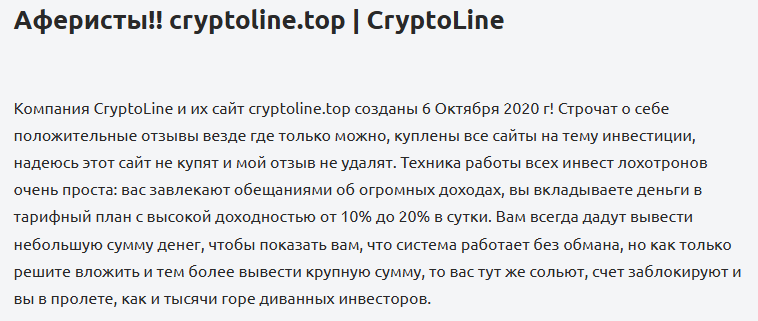 Во-первых, ник Cryptoelina перекликается с названием инвестиционной компании Cryptoline, которая прекратила свою деятельность года три назад. Поисковики нередко выдают гневные отклики обманутых инвесторов этой скам-площадки вместо комментариев о канале Элины Сидоренко.