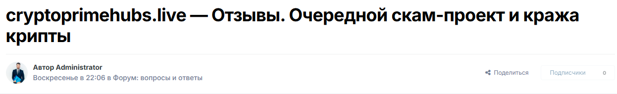 Найти отзывы о Cryptoprimehubs Live оказалось непростой задачей, чего не сказать разоблачениях и темах на форумах. Наша редакция обнаружила несколько материалов, где платформу называют “очередным скам-проектом”, который крадет крипту.