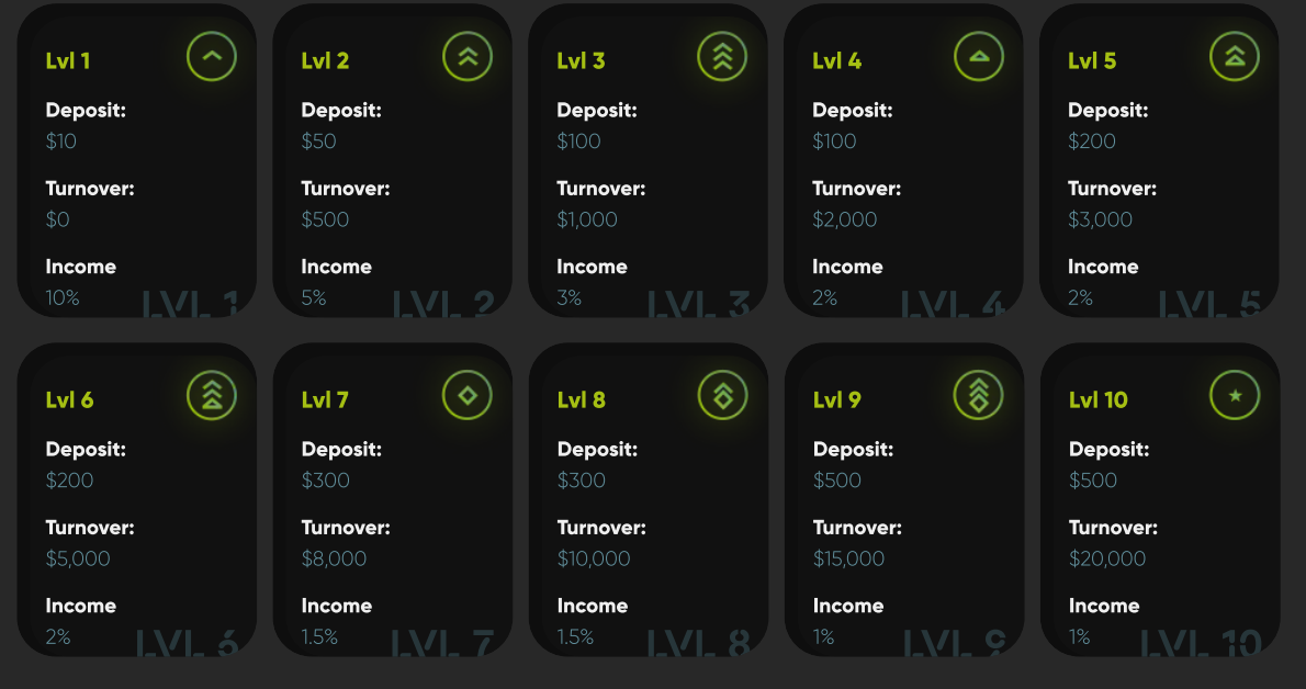 Для максимального дохода нужно внести от 5 тысяч долларов, сделать оборот команды в 300 тысяч долларов:
