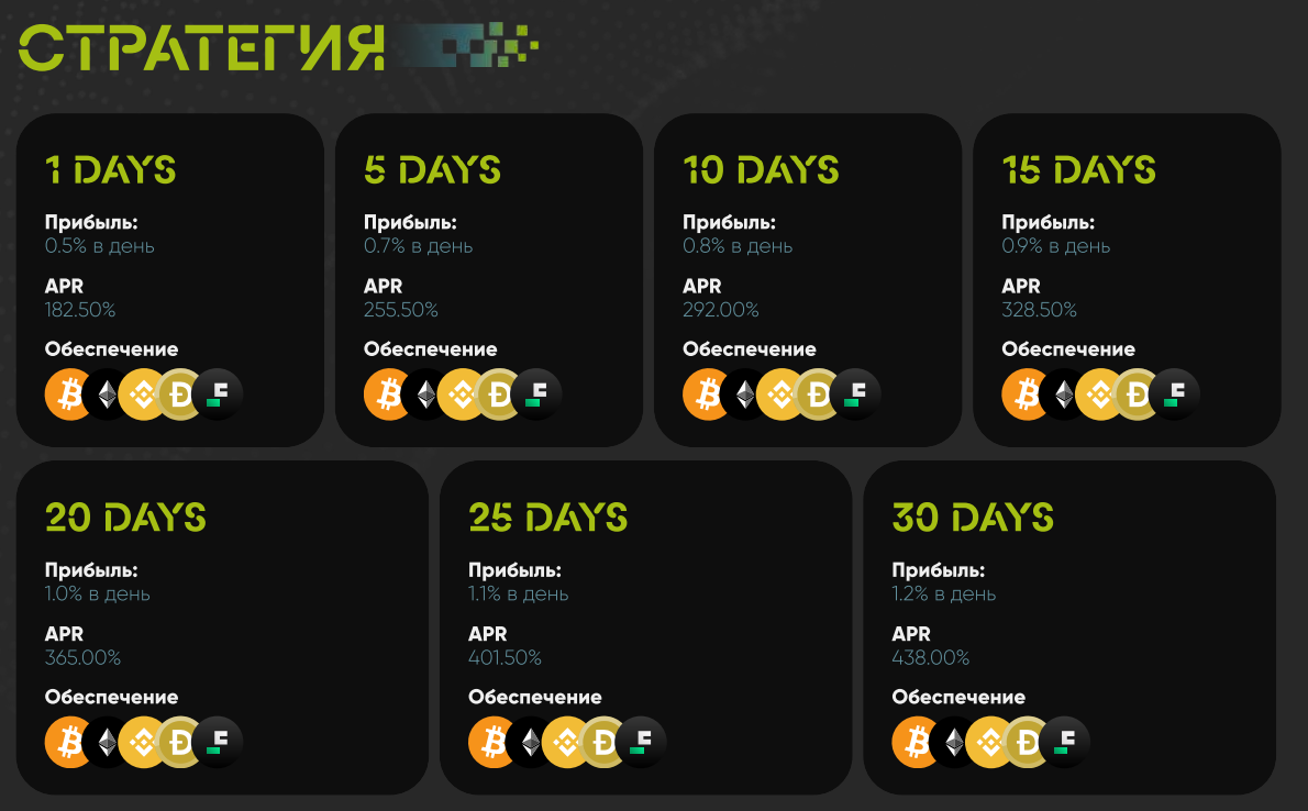 Каждый день пользователям обещают прибыль от 0,5 до 1,2%. Минимум можно вложить от 10 долларов. При этом пирамидщики заявляют о нулевом риске: