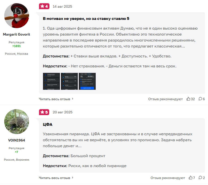 Про цифровые активы Озон отзывы есть разные — кто-то радостно пишет, что здесь высокие ставки, что это доступно и удобно. А кто-то недоволен тем, что не может связаться со службой поддержки, что проценты начисляются некорректно и т.п.
