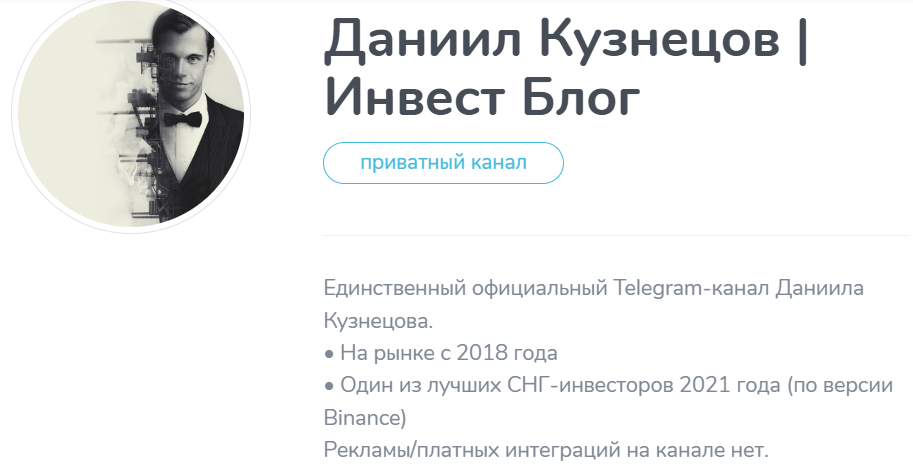 Данил Кузнецов в своем телеграм-сообществе утверждал, что он один из лучших инвесторов 2021 года по версии Binance. Но он не давал ссылку на соответствующую новость или реестр трейдеров на бирже. Скорее всего, в реальности названная торговая площадка даже не подозревала о его существовании.