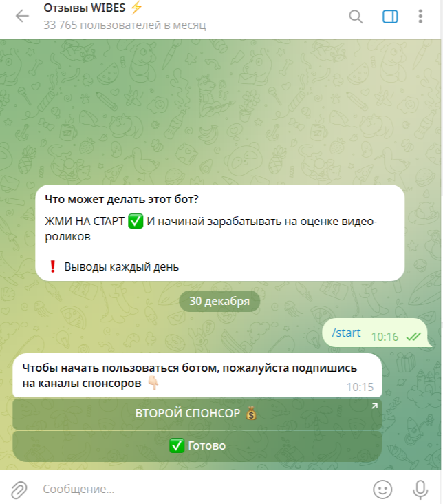Этот так называемый «Darkwibes bot» — очередная ловушка для доверчивых пользователей. Обещают лёгкий заработок, а на деле заставляют подписываться на бесконечные каналы, наполняя ваш Telegram спамом. Никакой реальной прибыли, только потерянное время и раздражение. Создатели бота просто наживаются на вашей наивности, увеличивая аудиторию своих каналов за ваш счёт. Не дайте себя обмануть!