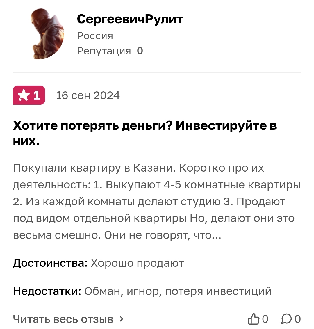 Закинул полмиллиона в их проект по флиппингу думал стабильный доход будет а вместо этого получил головняк с документами! Перепланировка у них липовая теперь управляющая компания мне мозг выносит. Тимур играет в застройщика но работает как перекуп втюхивает хлам под видом конфетки!