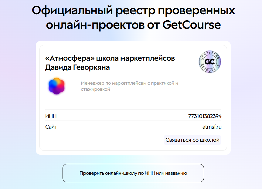 Проверка школы Атмосфера, отзывы о курсах по маркетплейсам от Давида Геворкяна, условия обучения и трудоустройство от Atmsf Ru