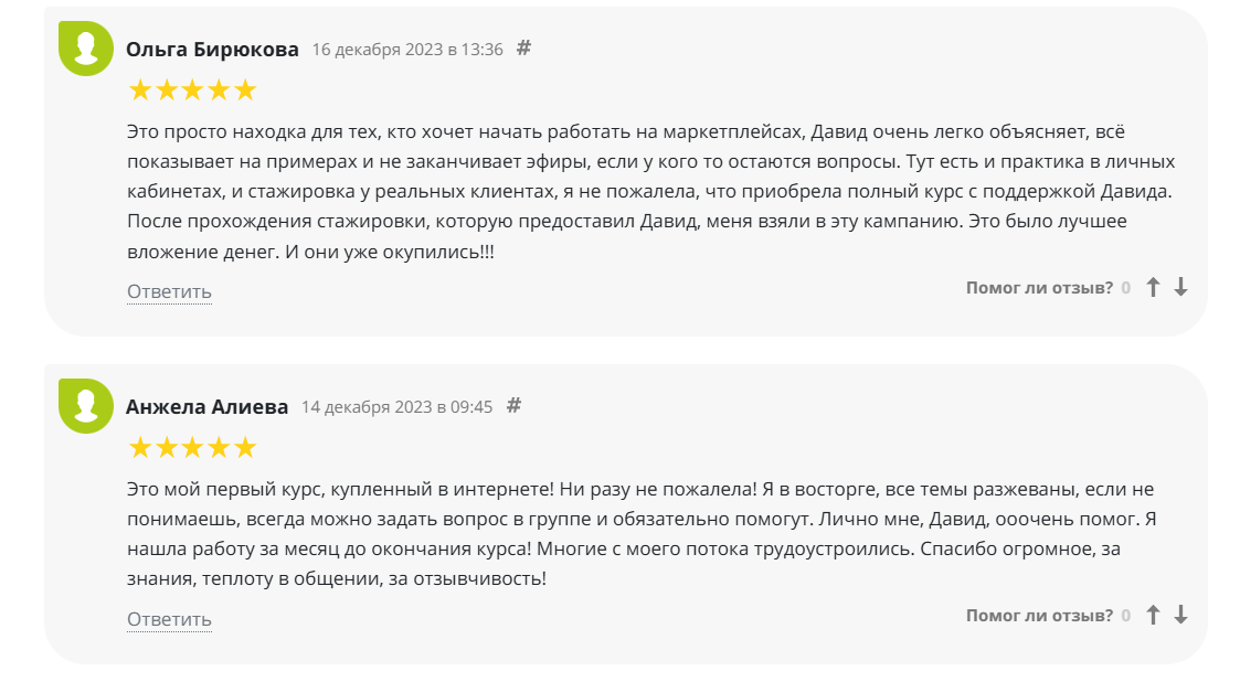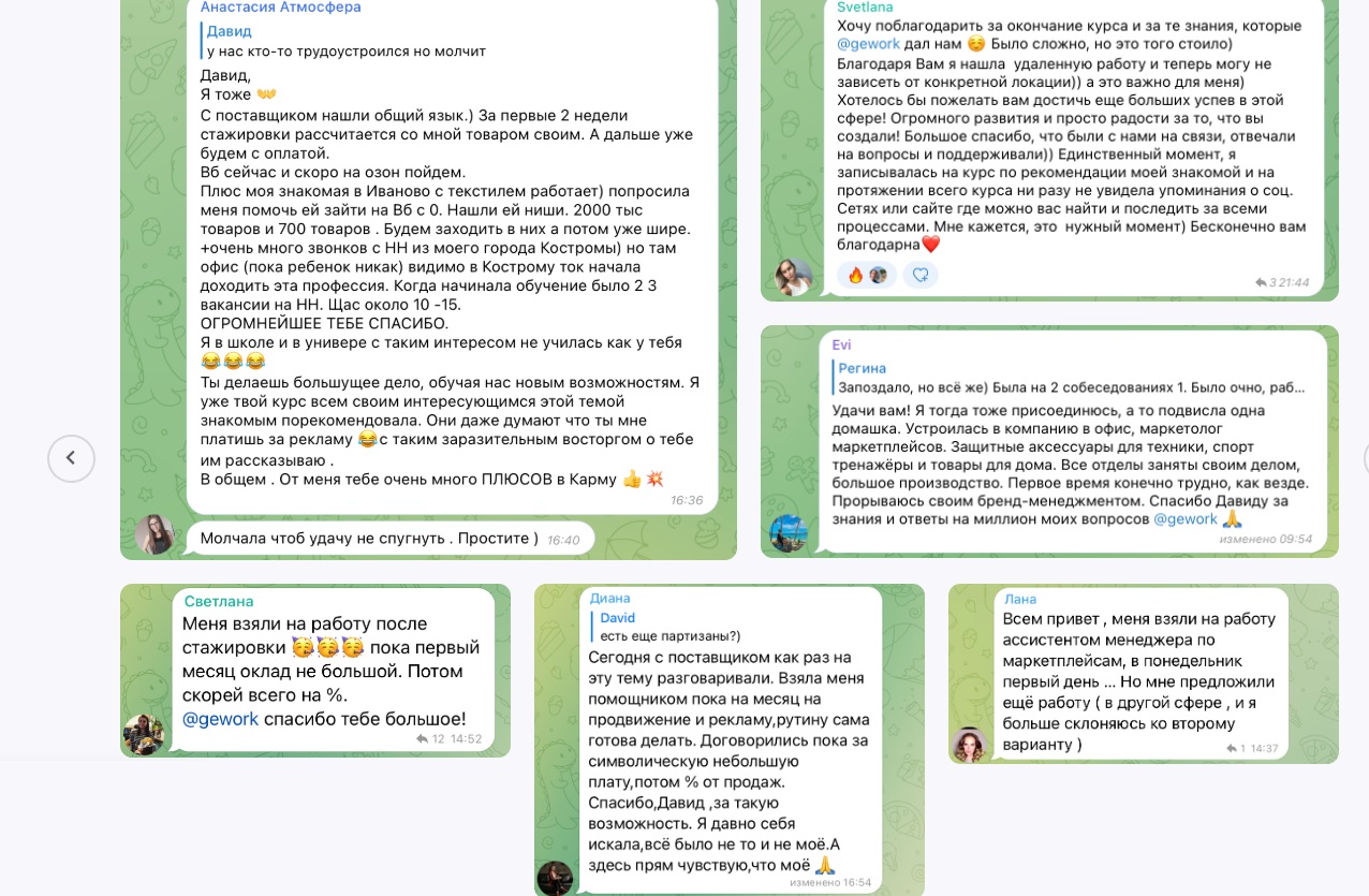 На официальных площадках Давида Геворкяна размещено много положительных отзывов — в текстовом и видеоформате, а также успешные кейсы учеников.