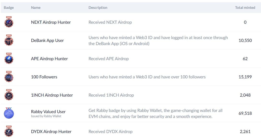 На ней клиенты DeBank Crypto найдут всю информацию о своем кошельке: последние транзакции, NFT-коллекции, общее портфолио и бейджи. Бейджами на платформе DeBank называют значки, полученные за уникальные достижения. Например, за участие в аирдропе или активность на сайте сервиса.