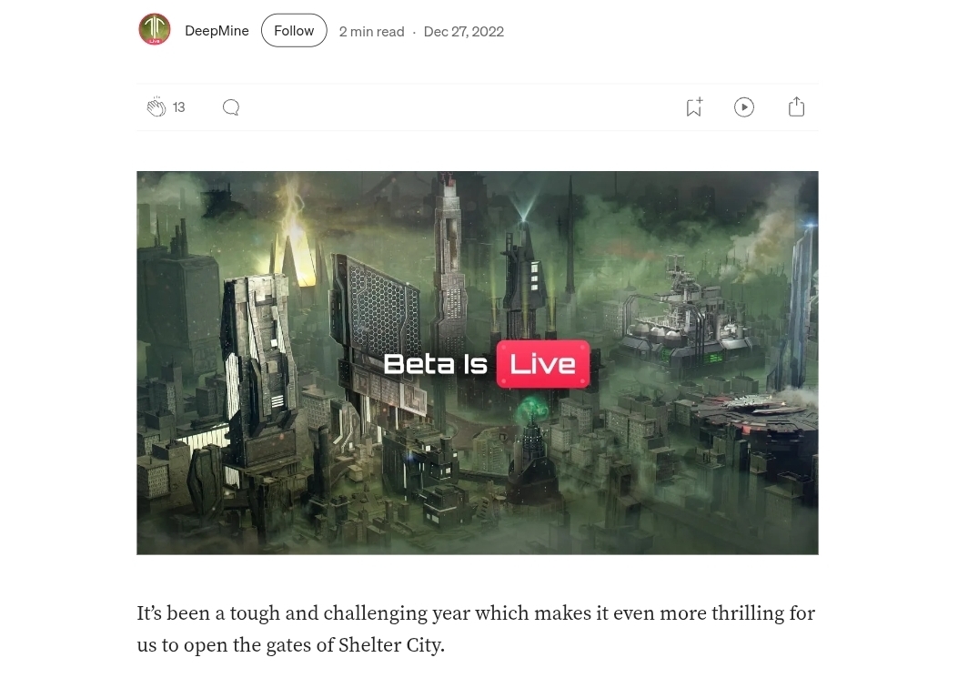 В декабре 2022 года состоялся запуск открытой беты под названием Shelter City. Это был значимый шаг: после более чем года подготовки игра наконец открыла двери для всех желающих. Команда DeepMineWorldAnn публиковала новости через официальный анонс канала сообщество в Telegram оставалось активным.