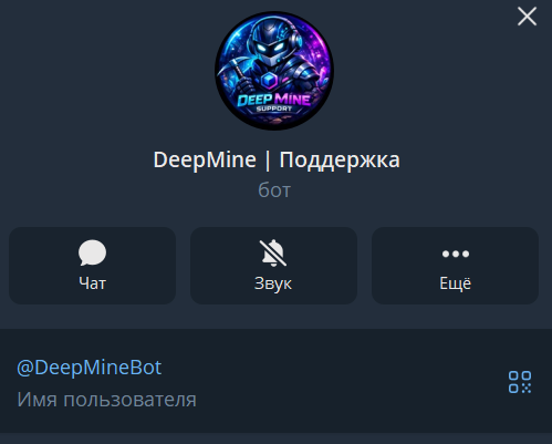 Связаться с представителями площадки можно через бота поддержки deepmine bot в Телеграм.