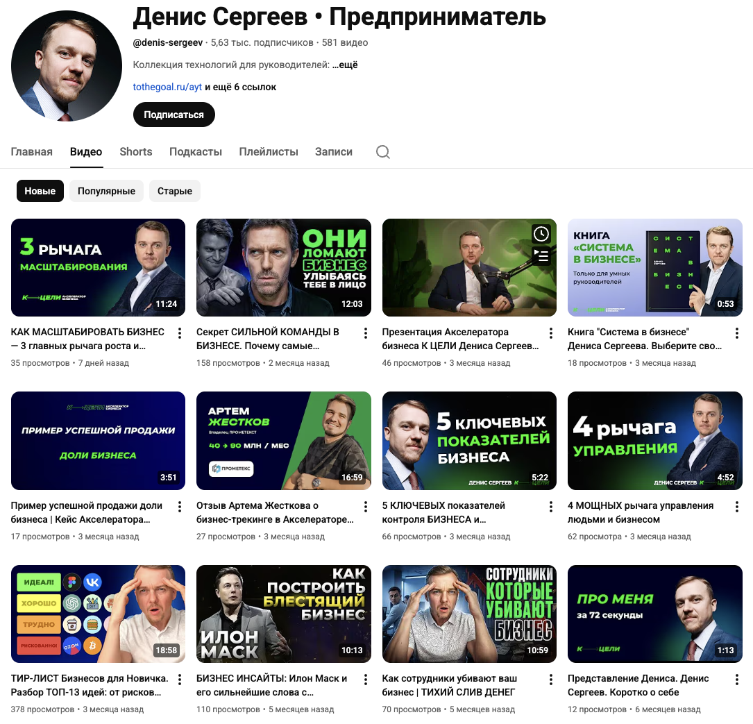 Бизнесмен периодически выкладывает ролики на Ютуб-канал «Денис Сергеев Предприниматель», который находится по адресу @ Denis Sergeev.