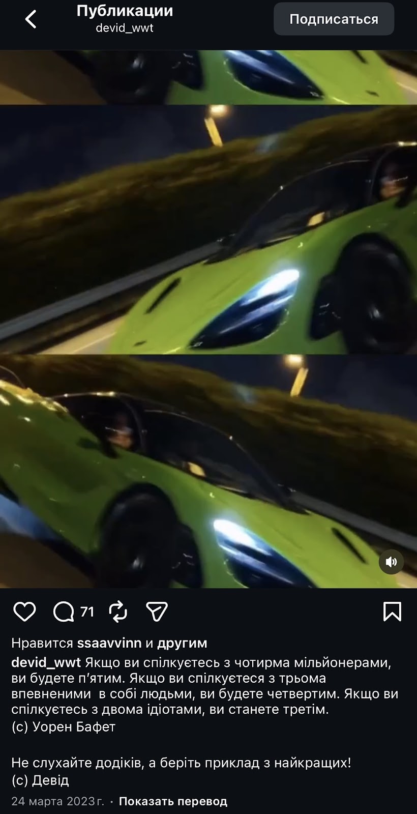 Здесь мы видим демонстрацию шикарной жизни с мотивационными постами. Принадлежит ли все запечатленное на фото самому трейлеру — неизвестно. Никакой конкретики по предложению о заработке нет.