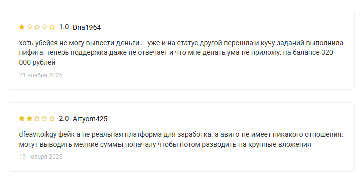 Команда проекта Dfeavitojkgy com ранее использовала брендинг известного маркетплейса Avito, пытаясь на этой почве вызвать больше доверия у пользователей. Однако, даже сокрытие под именем популярной площадки не помогло разработчикам привлечь положительное внимание к своей платформе. Немного забежим наперед и отметим, что репутация в сети у микро биржи крайне негативная. На основе этого делаем вывод о бесполезности прогрева пользователей.