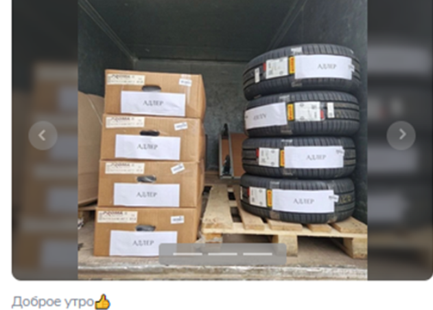 Также публикуются фотографии, на которых авторы отгружают заказанные диски и шины. Они подписывают их в соответствии с городом, куда их нужно отправить, например в Адлер.