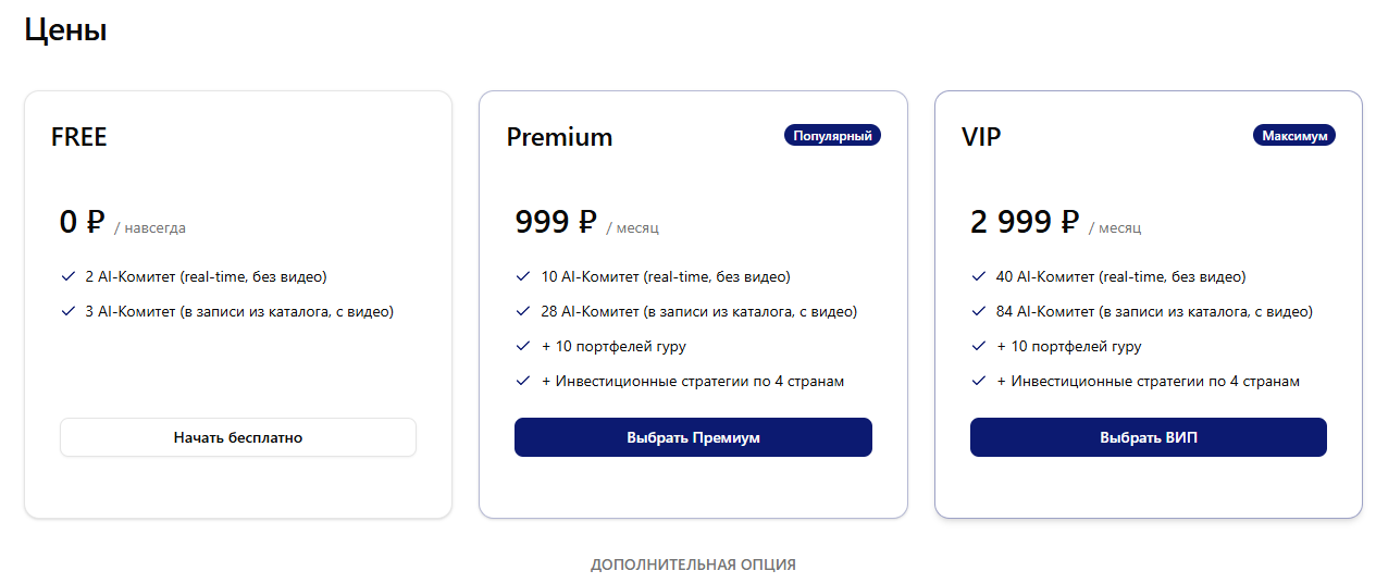 Претензий бы не было будь услуги DLFY NeuroInvest AI Инвесткомитет бота полностью бесплатными. Однако создатели запрашивают 999 рублей в месяц по тарифу Premium и 3 тыс. рублей за VIP. Кажется, в самостоятельном диалоге с качественным ИИ можно получить все то же самое бесплатно, если грамотно прописать промпт.