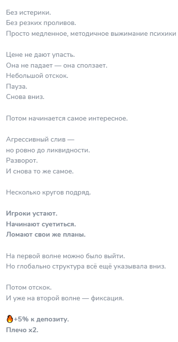 Этот Дмитрий Петров с его каналом Insiderx — очередной развод. Обещает золотые горы, а в итоге сливает депозиты. Никакой ответственности не несёт, статистика липовая. Не ведитесь на его байки, только деньги потеряете.