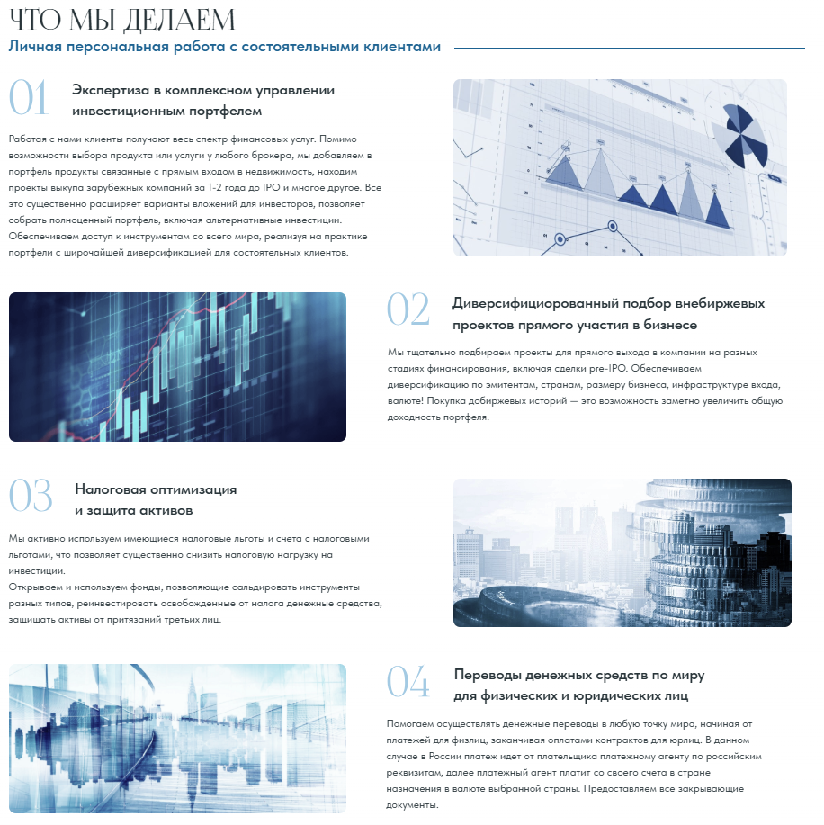 У фирмы O3 Finance нет фиксированной стоимости услуг, поскольку она занимается крупными активами и не связана с продажей курсов или других информационных продуктов, а условия обсуждаются индивидуально с заказчиком.
