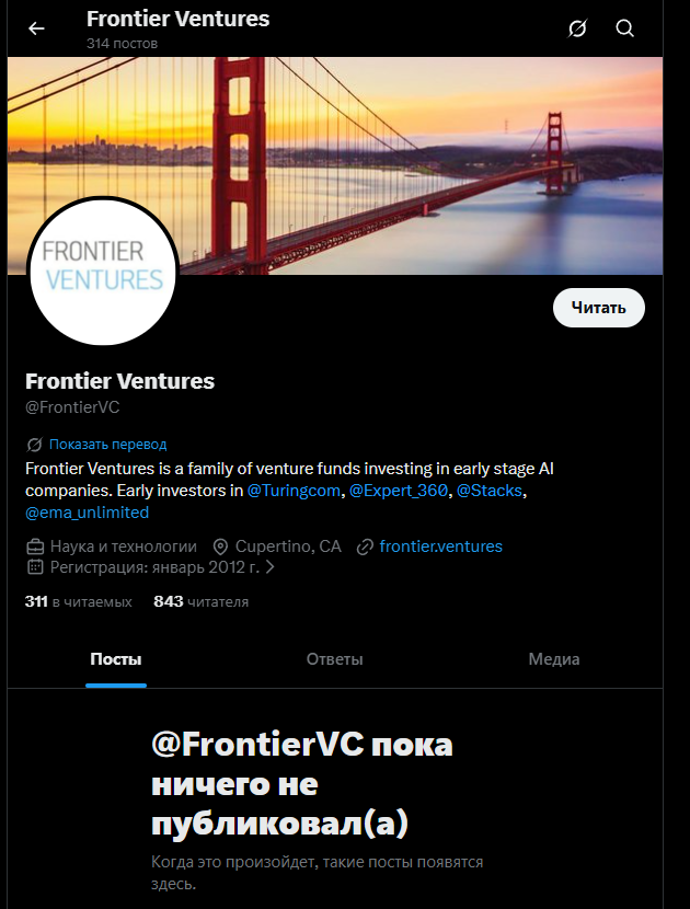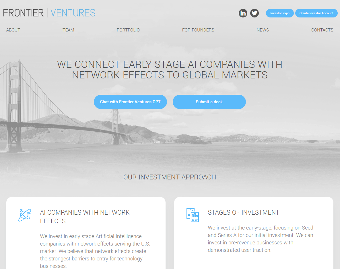 Фонд Frontier Ventures занимается поиском стартапов, которым требуется финансирование. После анализа проекта команда может вложить деньги в его развитие.