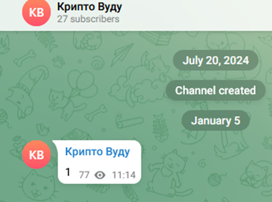 Основной канал t.me voodoo_crypto открыт в 2024, открытых записей не содержит, последняя сделана в январе 2025. Количество подписчиков также минимальное и на данный момент составляет всего 27 человек.
