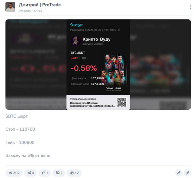 Дополнительно предлагается переход в приватный канал трейдера «Дмитрий | ProTrade». Именно тут публикуются сигналы, разборы работы CruptoVod, видео с Дмитрием. Количество подписчиков – более 12 тыс.