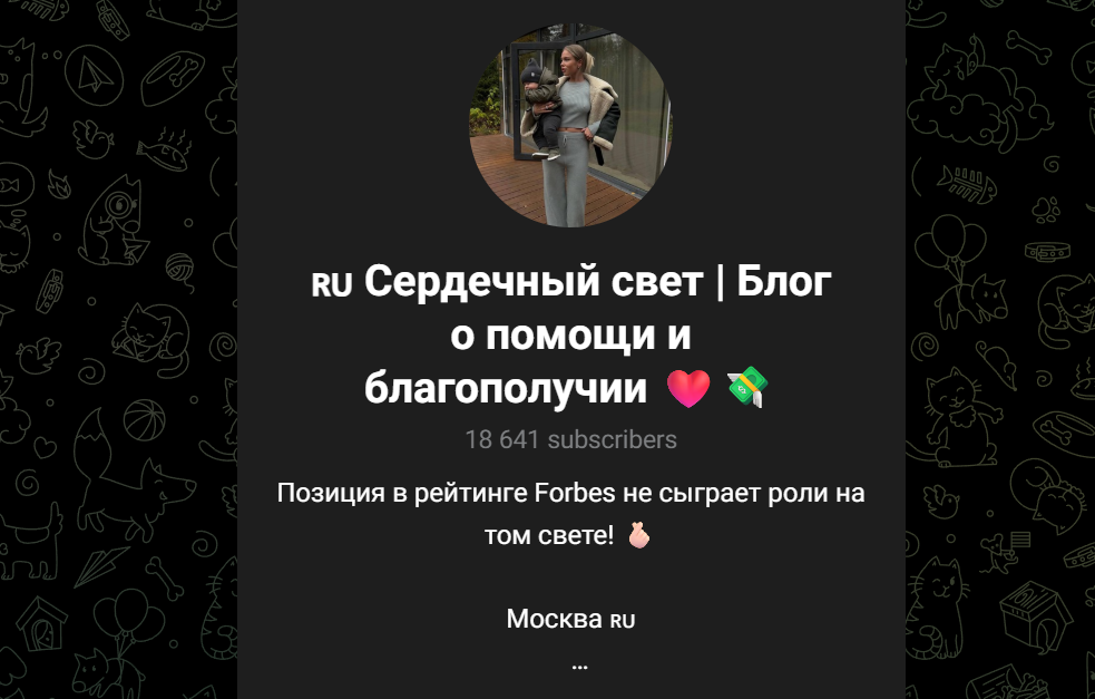 В описании рассматриваемого телеграм-канала указано, что его ведет человек, который занимается недвижимостью, владеет несколькими АЗС и прочими бизнесами. В качестве благотворительности до 20% от дохода она отдает другим, чтобы делать добрые дела. Поэтому практически любой подписчик может обратиться к автору канала и принять участие в конкурсе.