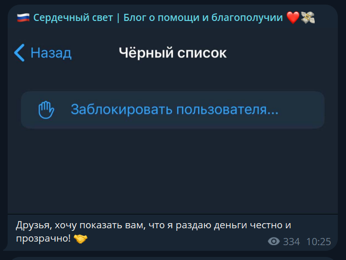 В телеграм-канале Dobroyaanna набралось 18,6 тысяч подписчиков. Канал официально появился в октябре 2015 года, но первое сообщение на нем было в августе 2025 года. Изначально тут были посты о криптовалюте и только потом началась раздача денег. Все это говорит о неоднократной смене владельцев, что говорит о высокой вероятности скама. Несмотря на крупное количество подписчиков, просмотры сообщений составляют около 10. Это говорит о невероятно высокой накрутке ботами, что характерно для мошенников.